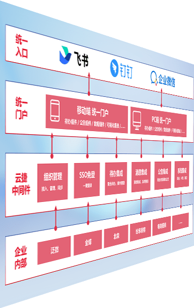 对协作平台提供支持服务,,,支持企业应用与协作平台对接,,包含组织同步、、、、消息集成、、、、待办集成等。。支持目前主流的协作平台:钉钉、、、企微和飞书。。